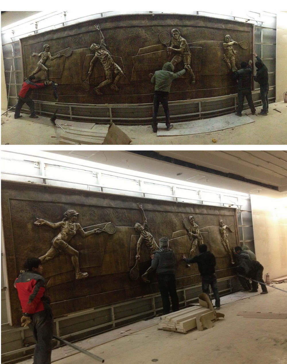 北京人工體育館外墻奧林匹克體育生活化浮雕文化墻